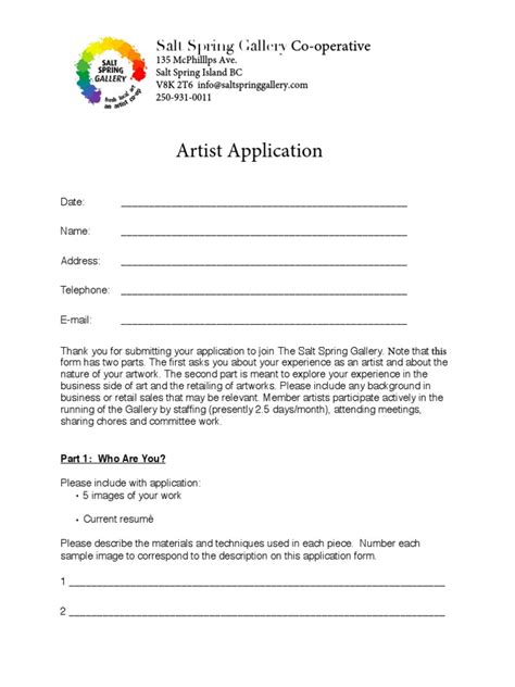 Preview the standard application for a visual arts work. Go digital and save time with signnow, the best. Six (6) different visual images, on labeled 35. Web complete artist application form online with us legal forms. Web handy tips for filling out artist application form online. We are not affiliated with any brand. Web impress candidates with an artist job application form that fits your brand. In this form, you can collect and evaluate the. Apply now and get the chance to collaborate with us in creating. Web an art gallery application form is used by artists to apply for a showing in an art gallery. Duncan, i wish to apply for the position of artist as advertised.