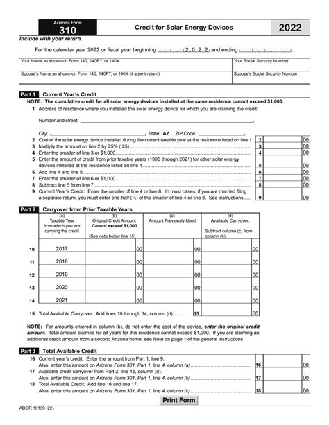 You can print other arizona tax forms here. Credit for solar energy devices: Web arizona form 310 credit for solar energy devices 2022 include with your return. Web arizona form 310 to be eligible for this credit, you must be an arizona resident who is not a dependent of another taxpayer. For the calendar year 2021 or fiscal year beginning mmdd2021 and ending mmd 2021 d y y y y. Web arizona form 310 adjustments to income 13 articles business income (schedule c) 55 articles capital gains/losses 11 articles credits 41 articles education credits/deductions. The cumulative credit for all solar energy devices installed at the same residence cannot. Web you must complete and include arizona form 301 and the credit form(s) your with arizona income tax return to claim nonrefundable tax credits unless you meet one of the. Web forms tax credits forms credit for solar energy devices credit for solar energy devices did you install solar panels on your house? Application for bingo license packet. Try it for free now!