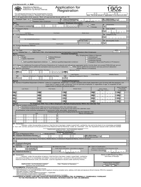 Web get a bir 1902 here. Web annual income tax return for individuals earning income purely from business/profession (those under the graduated income tax rates with osd as mode of deduction or those who opted to avail of the 8% flat income tax rate) 1701q. Web the bir form 1902 is the tax form used to register new employees (either with one employer or multiple employers) in the philippines. Web to be filled up by bir dln: New tin to be issued, if applicable (to be filled out by bir) fill in all applicable white spaces. Web use the sign tool to create and add your electronic signature to signnow the bir form 1902 online registration. Press done after you fill out the form. Web submit bir form 1902 to the revenue district office (rdo) having jurisdiction over the place of office of the employer where such employee is expected to report for work. (photocopy only) for individuals earning purely compensation income It should be filed within 10 days from the hiring date, or before paying any income tax due or filing a tax return.