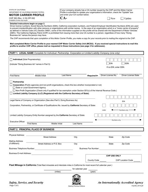 Chp Form 362. (b) chp carrier profile information:complete chp form 362 and. Web what is a chp 362 form?