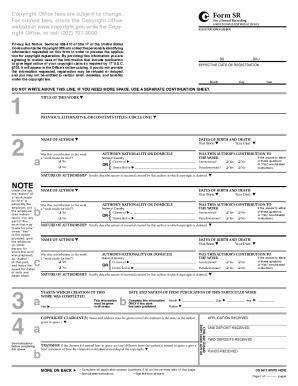 Initial notice of distribution of digital audio recording devices or media form. Web when to use form sr (sound recordings) use form sr for registration of published or unpublished sound recordings, that is, for registration of the particular sounds or. Use form sr for registration of published or unpublished sound recordings. Web paper filing (forms pa, sr, tx, va, se) $125: Law to the authors of original works of authorship fixed in any tangible medium of expression. Web form sr should be used when the copyright claim is limited to the sound recording itself. Form sr should be used when the copyright claim is limited to the sound recording itself, and. Web according to copyright.gov, you can use one form (sr) to register both the sound recording and composition, as long as the author and owner are exactly the. Web remember that online registration through eco (see above) can be used for the categories of works applicable to forms tx, va, pa, sr, and se. Start completing the fillable fields. Form sr is used for registering the.