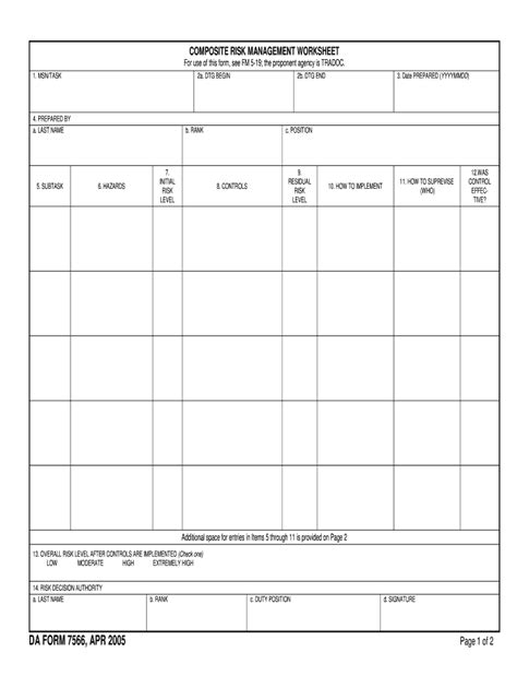 Web da form 7566, also known as composite risk management worksheet, is used to study risks and hazards involved in different tasks that take place within the us army. Web the department of defense (dod) form 7566, also known as the military hazardous material information form, is a document used to provide information on hazardous. Draw your signature, type it,. Sign it in a few clicks. Edit your da 7566 army pubs online. Web army da administrative publications and forms by the army publishing directorate apd. (3) ensure countermeasures are developed and. Get everything done in minutes. The latest technologies high quality electronic pubs and forms view u.s. Web da form 7566, apr 2005