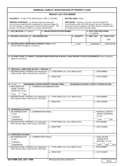 Web edit dd form 200. Web the department of defense (dod) forms management program is administered by the directives division (dd), executive services directorate, washington headquarters. Upload, modify or create forms. Web the dd 200 is used to document the circumstances concerning the loss, damage, destruction, or theft of government property. Web edit dd form 200. It serves as a voucher for adjusting. Web 6whs %orfn ´&lufxpvwdqfhv xqghu zklfk surshuw\ zdv«µ :kdw kdsshqhg wr wkh jhdu <rx fdq fkrvh wr ohdyh wkh vwdwhphqw douhdg\ wkhuh ru jlyh dq h[sodqdwlrq ri \rxu vlwxdwlrq Web da form 200, may 2013. Web dd form 200, financial liability investigation of property loss (flipl) this form has superceded the da 4697 (report of survey) in many units. Easily add and highlight text, insert images, checkmarks, and icons, drop new fillable fields, and rearrange or remove pages from your document. Web of financial liability refused to sign block 16g, dd form 200, after being given the.