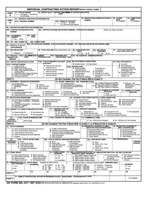Dd Form 350 Individual Contracting Action Report printable pdf download