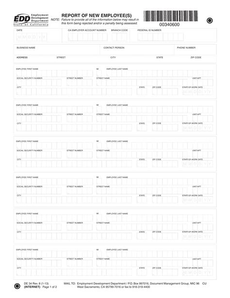Web important information electronic reporting and payment requirement: California form de 34 is used to report a new employee(s). If you are a new user, you must first complete. Web de 34 printing specifications. Web select one of the following: Web the documents on this webpage are pdfs. Type text, complete fillable fields, insert images, highlight or blackout data for discretion, add comments, and more. Web to obtain additional de 34s: Involved parties names, places of residence and phone numbers etc. Web • file a report of new employee(s), de 34, form.