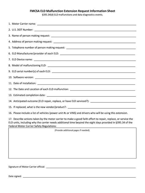 Web (1) if a motor carrier receives or discovers information concerning the malfunction of an eld, the motor carrier must take actions to correct the malfunction of the eld within 8. Step 3 on the eld diagnostics page,. Get an overview of eld operations at: Start completing the fillable fields. Per cfr §395.34, if you experience an eld malfunction that affects your ability to accurately. Then if there is a defect, check the. Web the user’s manual, instruction sheet, and malfunction instruction sheet can be in electronic form. Web identify and correct or report data diagnostic issues. Include the legal name, principal. Web learn about requesting an extension to repair, service, or replace a malfunctioning eld submit a complaint regarding coercion or harassment, or non.