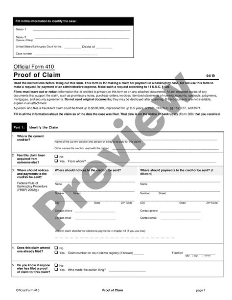 Bankruptcy Proof of Claim Form 410 Official Form 410 Proof Of Claim