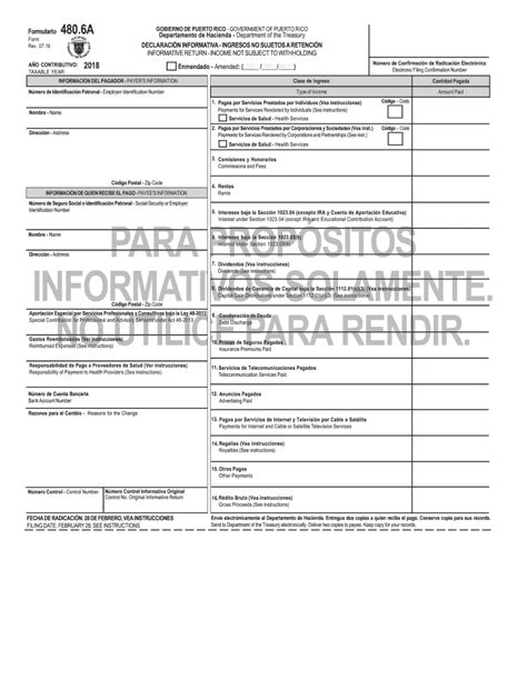 Web series 480.6a reports any taxable dividends and/or gross proceeds from realized capital gains or losses in your taxable investment account. In the case of int erests, form 480.6a will be required. Web forms 480.6a and 480.6d bppr is required by law to send informative statements about any amount of money forgiven to a mortgage customer. Web form that is subject to the paperwork reduction act unless the form displays a valid omb control number. Books or records relating to a form or its instructions must be retained. Web 16 rows tax form (click on the link) form name. Web se requerirá la preparación de un formulario 480.6sp para informar todos los pagos por servicios prestados que estuvieron sujetos y no sujetos a retención durante el. Web puerto rico form 480.6c for dividends and taxes withheld within an ira i have a traditional ira account with investments in numerous stocks and reits. If you receive these forms, it is. Web for each form requested, complete either the paper or usb and enter the specific tax year(s), as indicated.
