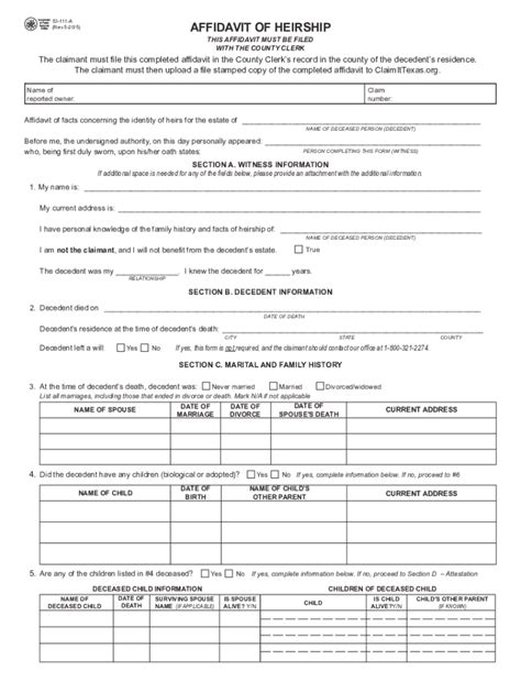 Free Texas Affidavit of Heirship 53111a Form PDF Word