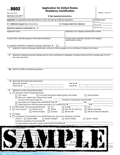 Form 8802Application for United States Residency Certification