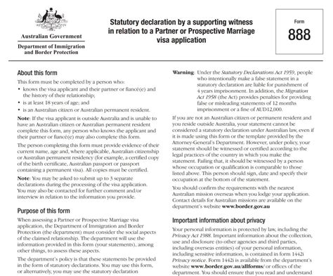 Ask the witnesses to sit back and just take a moment to write down in point form what they really. Web what is a form 888? Web australian government department of home affairs statutory declaration by a supporting witness in relation to a partner or prospective marriage visa application 888 3 4 state md. A full list of prescribed persons can be found in the statutory declarations regulations. Web about the form 888. In order to complete it, you will need to provide a range of information about yourself, your family,. Access documents held by department of home affairs. Web 888 form explained. Web the department of home affairs acknowledges the traditional custodians of country throughout australia and their continuing connection to land, sea and community. The migration of a partner or fiancé usually requires an application to be filled, by the applicant’s close friends or relatives, providing details that show the.