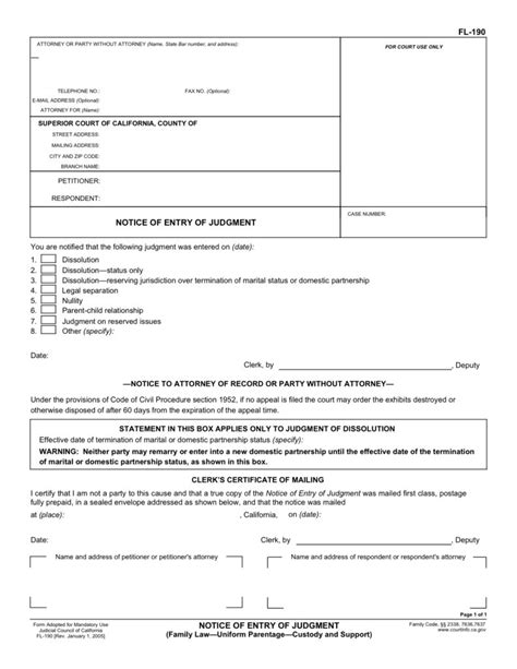 Edit your california divorce judgement form fl 190 instructions online. Web the filed date is the date the judgment was filed with the court. Then, fill out a judgment (uniform parentage) ( state. It’s the official notice from the court that your divorce. Web the clerk’s office will mail you a copy of your request for entry of default if the court entered the other party’s default. Today is march 3, 2012th. This page contains information about what this form is used for and who must file it, as. Web how to generate an electronic signature for the fl 190 instructions form in the online mode. Edit your california divorce judgement form fl 190 instructions online. Type text, add images, blackout confidential details, add comments, highlights and more. Fill out, edit, sign and download your documents in pdf.