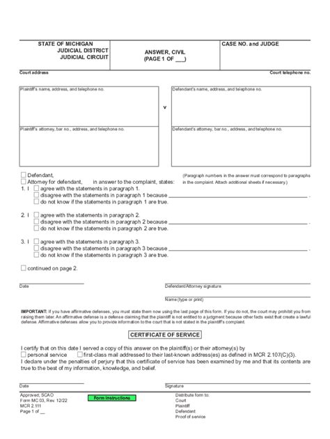 Write in the court number, case number, the court address, the court telephone. Web fill out form mc 03 (answer, civil) on the website or get a paper copy from the court to fill out. Web fill out form mc 03 (answer, civil) on the website or get a paper copy from the court to fill out. Web the michigan mc03 (answer, civil) form has a line about half the width of the page on which to write a denial for each paragraph of the complaint. This is always attached to another form or. Write in the court number, case number, the court address, the court telephone. January 1, 2006] declaration plaintiff other (specify): Write in the court number, case number, the court address, the court telephone. Web use a form mc 03 template to make your document workflow more streamlined. For the best accessibility experience, we recommend using adobe acrobat reader and setting the reading order.