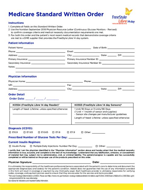 Use the noridian clinician resource letter (continuous glucose monitors) to confirm coverage criteria and medical necessity documentation requirements are met*. Inside, you’ll fi nd tips for getting the most out of your cgm system to help manage your diabetes. Web instructions complete all fields on this standard written order. Web the freestyle libre 2 flash glucose monitoring system is indicated for measuring interstitial fluid glucose levels in people aged. Web affordable †1 for your patients. Web instructions complete all fields on this standard written order. Instructions patient information physician information order detail order date: Fax both this order and the patient’s most recent medical records that demonstrate coverage criteria are met to a dme supplier that provides the freestyle libre 14 day system. Web please fill in all fields with the required necessary information for your order to be processed inte r na l use. Prescribed number of glucose tests per day: