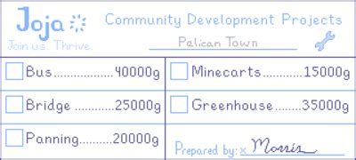 Joja Community Development Form. Web you can do so by completing the pantry bundles in the community center, or you could just buy the greenhouse project from the joja community development form. When logged in, you can choose up to 12 games that will be displayed as favourites in this menu.