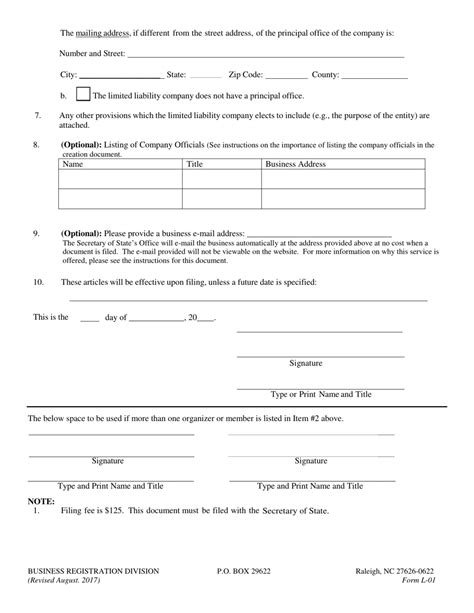 Web business registration division p.o. Type text, add images, blackout confidential details, add comments, highlights and more. Complete, sign and save the document offline as a pdf; Easily fill out pdf blank, edit, and sign them. And 55d, filings, names, and registered agents for corporations. You may apply online, by mail, or in. Save or instantly send your ready documents. Web edit your north carolina form l 01 online. Certificate of domestic limited partnership including optional application as. Web north carolina limited liability company act; This is a north carolina form and can be use in limited liability.
