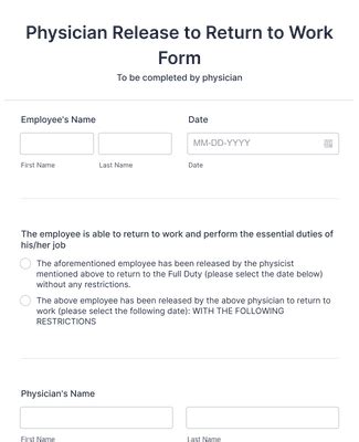 Web patient is able to perform the following level of work the us dept. Web the return to work form template from formsite offers an effortless way for hr departments to manage all employee absences related to a medical condition, sick. Physicians play an integral role in workers’ recovery and. Web physician’s release to return to work form employee’s name: Web watch newsmax live for the latest news and analysis on today's top stories, right here on facebook. Web lincoln public schools employees who are experiencing mental health issues are to have this form completed by the treating physician prior to returning to work. Of labor classifies five degrees of work in terms of lifting requirements. Web physician’s release to return to work form to be completed by physician after reviewing the attached job description and the specific tasks within the job. Fill, sign and download return to work medical form online on handypdf.com (econsys), to explore and report on the role of the physician in the return to work (rtw) process. Web fillable and printable return to work medical form 2023.