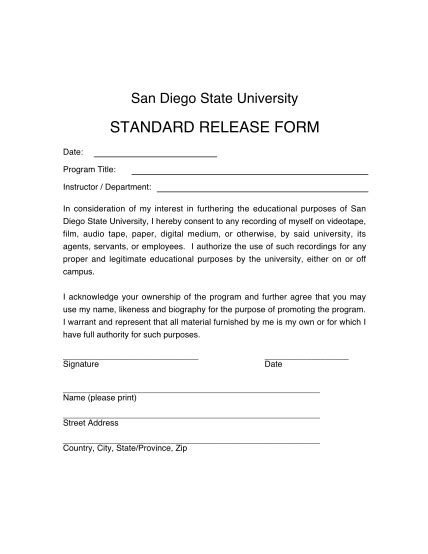 Standard Release Form. What is a release form used for? It comprises of all the important segments.