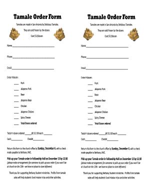 3.9 based on 106 votes order with. Submissions will not be fulfilled otherwise. Web sendet tamale order form via sending, link, or fax. Web 2017 tamale fundraiser 2017 tamale fundraiser name first and last/phone number beef $20/doz. If you have a question, please email us and we will. Price per dozen tamales $12.00 price per jar salsa $12.00 rec'd paid form due date: _____ p h o n e : Web @ramireztamales form due date: Start completing the fillable fields. Web tamale order form forma para ordenar tamales flavor/sabor dozen/dozena half dozen/ media dozena red beef/ res.
