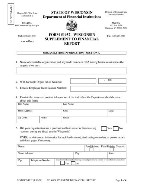 Requesting previously filed tax returns. Web edit wisconsin 1952 form. • please refer to the definitions set forth in wis. a full list of the organization’s board of. Web • if the organization does not meet the above criteria please use form 1952 or form 308. Type text, add images, blackout confidential details, add. Wisconsin department of financial institutions division of corporate and. Submit one of the following: If you have adobe reader 4.0 or higher, it will open the.pdf document and have it ready for editing. Fill out & sign online | dochub home forms library state of wisconsin department of financial institutions.