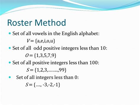 Web the roster method is defined as a way to show the elements of a set by listing the elements inside of brackets. Web the roster method is defined as a way to show the elements of a set by listing the elements inside of brackets. It is one of the methods for notifying sets. Web the roster method is one of several set notations you can use to write a set. Web the roster method is a term that often confuses mathematics students. Web roster notation or tabular form is one of the techniques for notifying sets wherein the members of a given set. Web 4 rows the roster form to represent the set is one of the easiest representations. Web the roster method is defined as a way to show the elements of a set by listing the elements inside of brackets. 4/28/2022 janie78 ∙ lvl 1 ∙ 14y ago study now see answers (2) best answer. Web what is the roster method? Web the roster method is defined as a way to show the elements of a set by listing the elements.