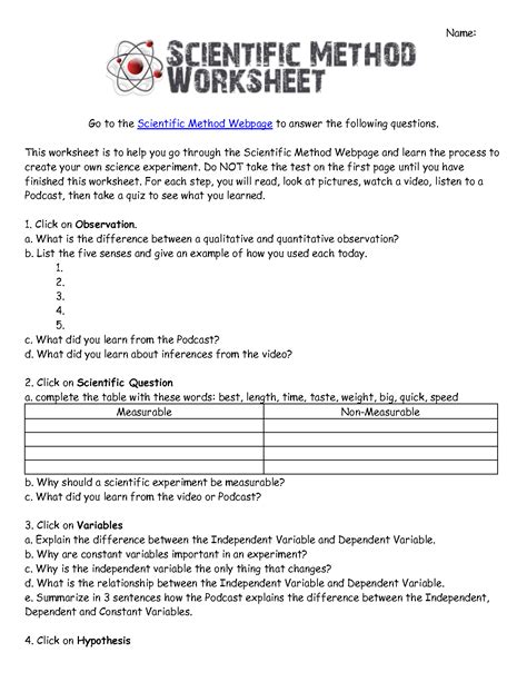 The scientific method is answers to their questions. Perfect for teachers who want to nurture critical thinking skills, this free. Web it is a means of using experiments to solve a problem or answer a scientific question. Base your answer(s) to the following question(s) on the information and diagram below. Web grab your free scientific method worksheet printable. Web 1 scientific method_essay1_hypothesis experiment 1: Web objective understand the nature of science • understand that science investigations use a variety of methods and do not always use the same set of procedures; A biology student wanted to determine if there is a relationship between resting heart rate and body height. Web and _____ to answer the question. Web the basic steps of the scientific method 1. 20+ worksheets, sample experiments, and process explanations.